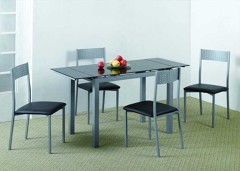 Conjunto de mesa con 4 sillas de cocina en color negro. La mesa esta realizada sobre una estructura…