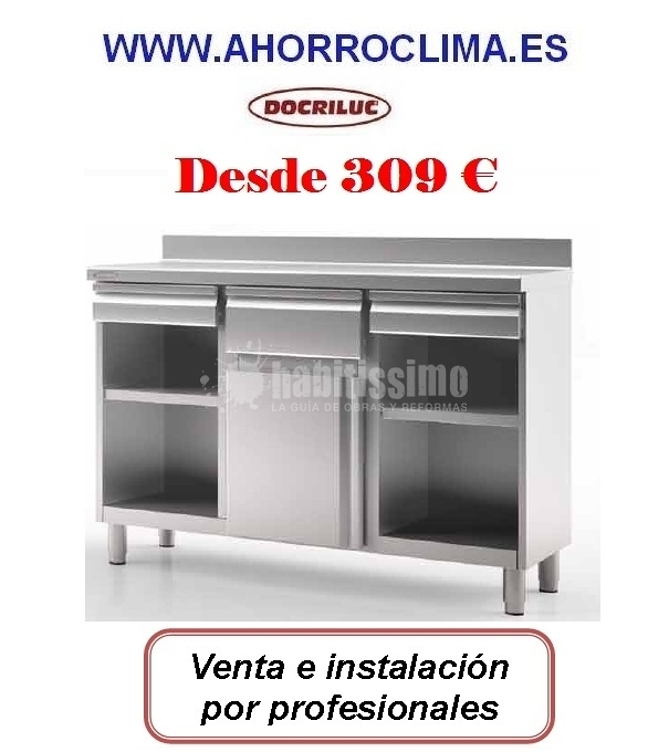 contra mostrador cafetero acero inoxidable Docriluc, con cajones auxiliares. Visite nuestra web www. ahorroclima. es. Servicio en toda España. Pídanos presupuesto sin compromiso. Venta e instalación de contra mostradores cafeteros acero inoxidable Docriluc.309 € IVA no incluido. Cajones auxiliares intercambiables por tolva para café. Gracias a su diseño técnico de vanguardia y a un sistema de producción eficaz, fiable y preciso, los contra mostradores Docriluc destacan por su excelente relación entre calidad, prestaciones y precio, permitiendo satisfacer las necesidades del profesional más exigente. La instalación es a cargo de empresas instaladoras autorizadas garantizándole 1 año de garantía del fabricante y servicio técnico. Características técnicas: Estructura compacta