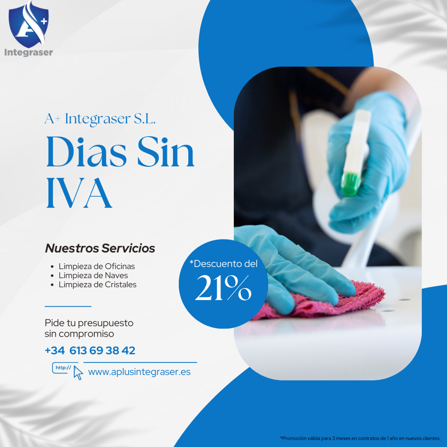 21% de descuento en nuestros servicios de limpieza (limpieza de oficinas, limpieza de naves, limpieza de cristales) - promoción valida para 3 meses en contratos de 1 año en nuevos clientes.