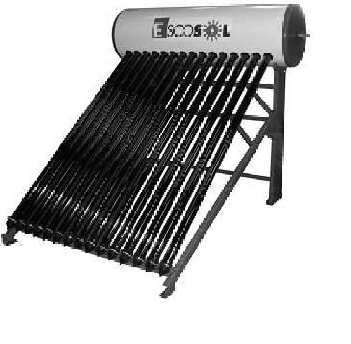 Equipo compacto para la producción de Agua Caliente Sanitaria formado por colector de tubos de vacío y depósito de 150 litros de capacidad. Modelo Escosol compacto HP 15 1800/58 150 L. Totalmente instalado.