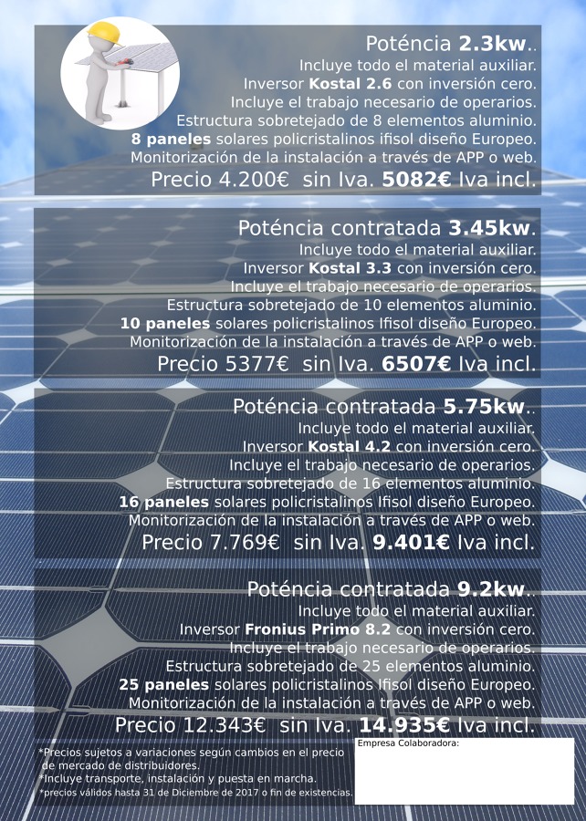 en categoría Ofertas instaladores, Ofertas instalaciones solares fotovoltaicas, Ofertas energías renovables, Ofertas instalar energía solar fotovoltáica (electricidad), Ofertas solar fotovoltaica aislada